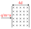 If a charged particle of charge to mass ratio q/m = α is entering in a magnetic field of strength B at a speed v = (2αd)(B), then which of the following is correct?