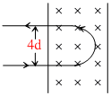 B.The charge will move on a circular path and will come out from magnetic field at a distance 4d from the point of insertion