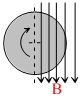 A thin non conducting disc of radius R is rotating clockwise (see figure) with an angular velocity w about its central axis, which is perpendicular to its plane. Both its surfaces carry + ve charges of uniform surface density. Half the disc is in a region of a uniform, unidirectional magnetic field B parallel to the plane of the disc, as shown. Then,
