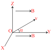In a region of space, a uniform magnetic field B exists in the y-direction. A proton is fired from the origin, with its initial velocity v making a small angle αwith the y-direction in the yz plane. In the subsequent motion of the proton