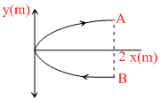A conducting wire bent in the form of a parabola y2 = 2x carries a current i = 2A as shown in figure. This wire is placed in a uniform magnetic field