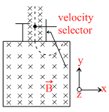 A.Electric field across the conducting plate of the velocity selector is - 106 NC-1î