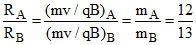 of the radii of the circular paths for the two particles is 12/13