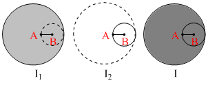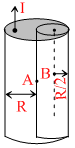 From a cylinder of radius R, a cylinder of radius R/2 is removed, as shown. Current flowing in the remaining cylinder is I. Magnetic field strength is -
