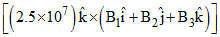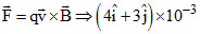 × 107 ms-1. When the velocity is redirected and becomes (1.5î - 2.0ĵ) × 107 ms-1, the magnetic force of the electron is zero. The magnetic field vector