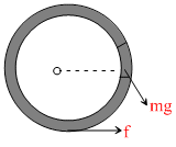 A small block of mass ′m′ is rigidly attached at ′P′ to a ring of mass ′3m′and radius ′r′. The system is released from rest at θ = 90o and rolls without sliding. The angular acceleration of hoop just after release is -