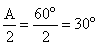 A ray of light incident on an equilateral prism at the minimum deviation position. The angle of refraction at the first face (i.e., incident face) of the prism is