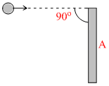 A thin rod of mass M and length L is struck at one end by a ball of clay of mass m, moving with speed v as shown in figure. The ball sticks to the rod. After the collision, the angular momentum of the clay-rod system about A, the midpoint of the rod, is