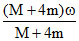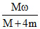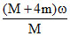 A thin circular ring of mass M and radius ′r′ is rotating about its axis with a constant angular velocity ω. Four objects each of mass m, are kept gently to the opposite ends of two perpendicular diameters of the ring. The new angular velocity of the ring will be : -