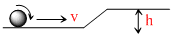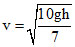 A solid sphere is rolling on a frictionless surface, shown in figure with a translational velocity v m/s. If it is to climb the inclined surface then v should be : -