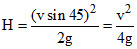 A particle of mass m is projected with a velocity v making an angle of 45o with the horizontal. The magnitude of the angular momentum of the projectile about the point of projection when the particle is at its maximum height is : -