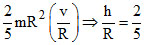 A solid sphere is placed on a horizontal plane. A horizontal impulse I is applied at a distance h above the central line as shown in the figure. Soon after giving the impulse the sphere starts rolling. The ratio h/R would be-