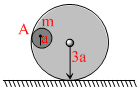 A ring of radius 3a is fixed rigidly on a table. A small ring whose mass is m and radius a, rolls without slipping inside it as shown in the figure. The small ring is released from position A. When it reaches at the lowest point, the speed of the centre of the ring at that time would be -