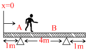 A man can move on a horizontal plank supported symmetrically as shown. The variation of normal reaction on support A with distance x of the man from the end of the plank is best represented by