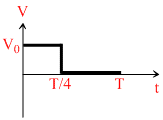 A periodic voltage V varies with time t as shown in the figure. T is the time period. The r.m.s. value of the voltage is : -