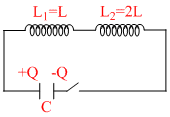 In the circuit shown the capacitor has charge Q. At t = 0 sec the key is closed. The charge on the capacitor at the instant potential difference across the inductor L1 is zero, is