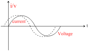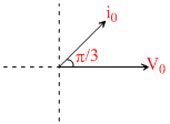 The graph shows V & I as function of time. Current leads the voltage by π/3