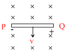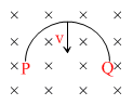A semicircle loop PQ of radius ′R′ is moved with velocity ′v′ in transverse magnetic field as shown in figure. The value of induced emf. across the ends PQ of the loop is