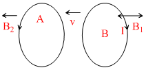 Two identical circular coils A and B are placed parallel to each other with their centers on the same axis. The coil B carries a current I in the clock wise direction as seen from A. What would be the direction of the induced current in A seen from B when (i) The current in B is increased (ii) The coil B is moved towards A keeping the current in B constant