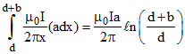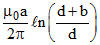 A rectangular loop of sides ′a′ and ′b′ is placed in xy plane. A very long wire is also placed in xy plane such that sides of length ′a′ of the loop is parallel to the wire. The distance between the wire and the nearest edge of the loop is ′d′. The mutual inductance of this system is proportional to -