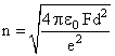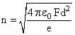 Two positive ions, each carrying a charge q, are separated by a distance d. If F is the force of repulsion between the ions, the number of electrons missing from each ion will be (e being the charge of the electron)