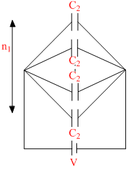 [Using (i)] ...... (ii)A parallel combination of n2 capacitors each of capacitance C2 are connected to V source as shown in the figure