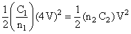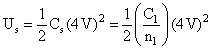 A series combination of n1 capacitors, each of value C1 is charge by a source of potential difference 4V. When another parallel combination of n2 capacitors, each of value C2 is charged by a source of potential difference V, it has the same (total) energy stored in it, as the first combination has. The value of C2 in terms of C1 is then
