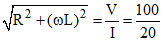 A student connects a long air cored-coil of magnanin wire to a 100 V D.C. supply and records a current of 25 amp. When the same coil is connected across 100 V. 50 Hz A.C. the current reduces to 20 A, the reactant of the coil. is : -