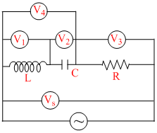 In the adjoining A.C. circuit the voltmeter whose reading will be zero at resonance is : -