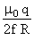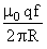 A thin ring of radius R meter has charge q coulomb uniformaly spRead on it. The ring rotates about its axix with a constant frequency of f revolutions/s. The value of magnetic induction in Wb/m2 at the centre of the ring is