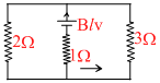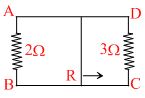A rectangular loop with a sliding connector of length 10 cm is situated in uniform magnetic field perpendicular to plane of loop. The magnetic induction is 0.1 tesla and resistance of connector (R) is 1 ohm. The sides AB and CD have resistances 2 ohm and 3 ohm respectively. Find the current in the connector during its motion with constant velocity one meter / sec.