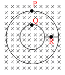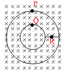 D.the induced current at point R is zero