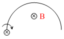 A semicircular wire of radius R is rotated with constant angular velocity w about an axis passing through one end and perpendicular to the plane of the wire. There is a uniform magnetic field of strength B. The induced e.m.f. between the ends is -