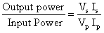 Efficiency of the transformenr, η =