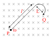 When a ′J′ shaped conducting rod is rotating in its own plane with constant angular velocity ω, about one of its end P, in a uniform magnetic field