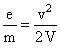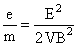 A beam of cathode rays is accelerated by a potential V and then subjected to crossed electric (E) and magnetic field (B). such that the beam is not deflected. The specific charge of the cathode rays is given by ?