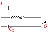 At a moment (t = 0) when charge on capacitor C1 is zero, the switch is closed. If I0 be the current through inductor at that instant, for t > 0,