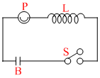 In figure, a lamp P is in series with an iron-core inductor L. When the switch S is closed, the brightness of the lamp rises relatively slowly to its full brightness than it would do without the inductor. This is due to