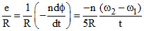 A coil having n turns and resistance RΩ is connected with a galvanometer of resistance 4RΩ. This combination is moved in time t seconds from a magnetic field W1 weber to W2 weber. The induced current in the circuit is -