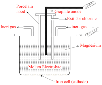 At cathode : Mg2+ + 2e- → Mg(99% pure) ;