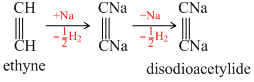 Ethylene liberates H2 with highly electropositive metals, a characteristic of acids.