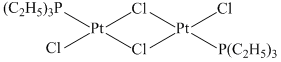 When two (C2H5)3P groups are on same side it is cis - and when those are on opposite side it is trans-
