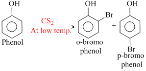 Phenol reacts with bromine in carbon disulphide at low temperature to give :