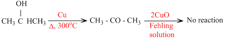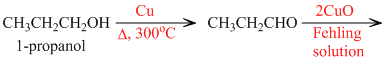 On passing the vapours of 1-propanol and 2-propanol over heated Cu, 1-propanol will give propanal which reacts with Fehling′s solution to give red ppt. (a test used ot identify - CHO gp.). 2-propanol gives acetone in this reaction which does not react with Fehling′s solution.