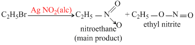 The major product is nitroethane but ethyl nitrite. is also formed as a side product along with AgBr.