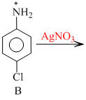 White ppt. (AgCl)The halogen atom of A is directly attached to benzene ring and C - C bond acquires partial double bond character due to lp-π electron interaction, so not claned easily.