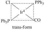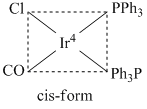 (B) Coordination number of Ir is four. Ir is in (+1) oxidation state with 4d8 configuration. It is trans isomer, so its geometry should be square planar.
