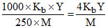 Y gm of non-volatile organic substance of molecular mass M is dissolved in 250 gm benzene. Molal elevation constant of benzene is Kb. Elevation in its boiling point is given by :