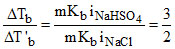 Consider equimolal aqueous solutions of NaHSO4 and NaCl with ᐃTb and ᐃT′b as their respective boiling point elevations. The value of