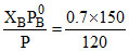 What is the mole ratio of benzene (PB0 = 150 torr) and toluene (PT0 = 50 torr) in vapour phase if the given solution has a vapour pressure of 120 torr?
